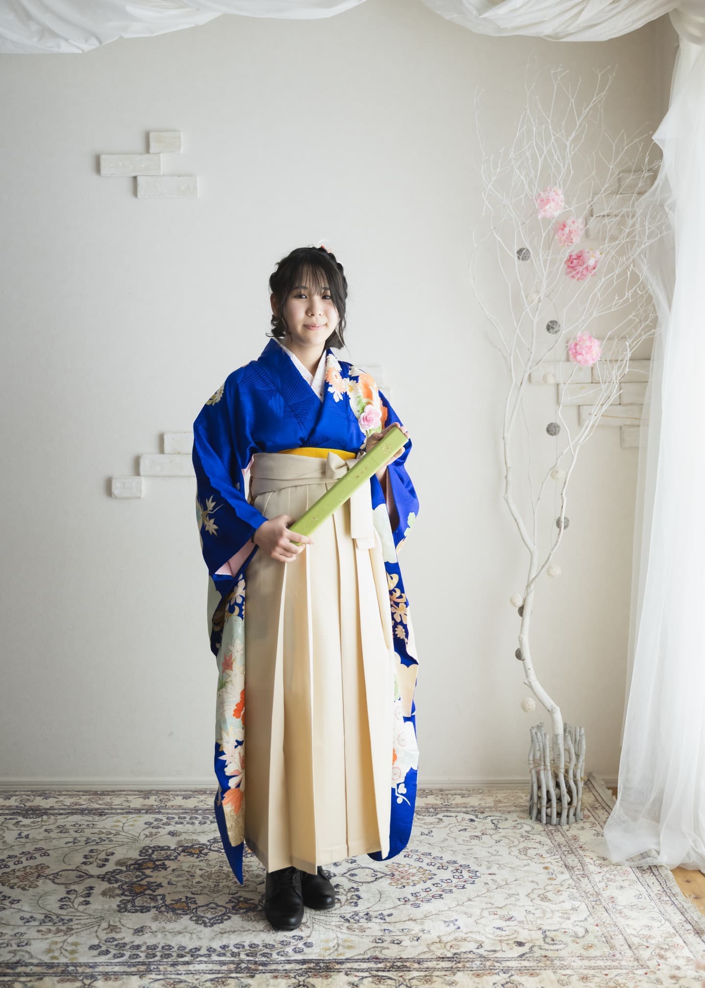 ◯ お足元はお草履かブーツのどちらかをご用意ください。どちらになさるのかによって袴の着付ける丈が変わります。小学校の卒業式へは上履きに履き替えますのでお草履がおすすめです。ブーツの場合には靴下のご用意をお願いいたします。